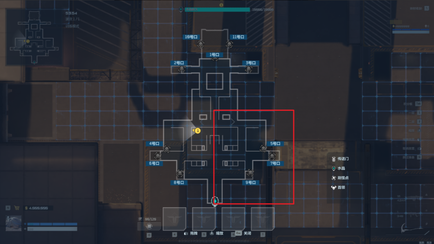 进入游戏后,PC端需按“M”,移动端则是“点击左上角地图”即可展开地图信息,根据地图信息可以详细知道该地图共有11个出怪口,包含空中和陆地,于正常战斗时也可以于该界面了解怪物进行信息,做进一步设防。