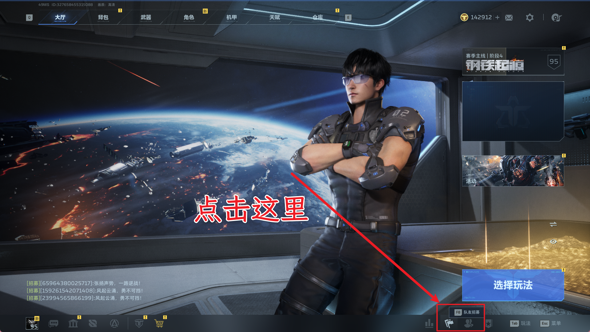 逆行者们点击一旁的旗帜符号会进入队友招募界面(在大厅中快捷键为“F8”)。