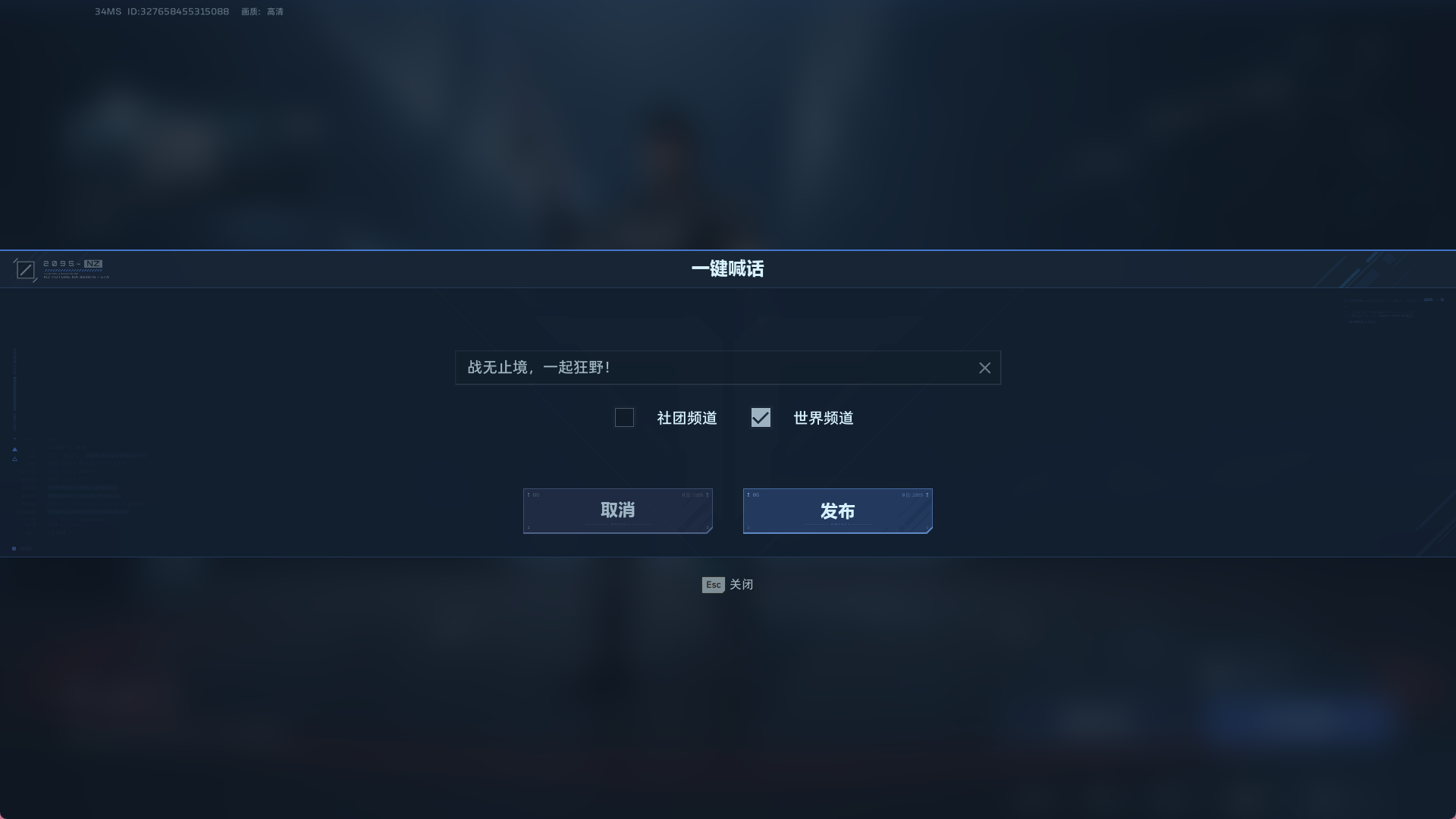 其中,点击喇叭符号为一键喊话功能,逆行者们可以自由编辑内容,并勾选社团频道和世界频道进行发布。