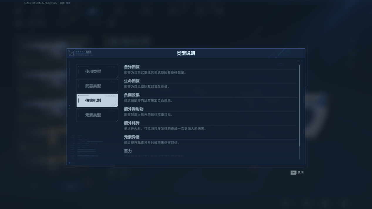 武器伤害机制有备弹回复、生命回复、负面效果、额外抛射物、额外耗弹、元素异常、蓄力、弹夹容量几种。如,生命回复能够为自己或队友回复生命值,负面效果能够向敌方施加负面效果,蓄力影响伤害或射程等属性。不同的武器有着不同的伤害机制,适合自己的才是最好的。