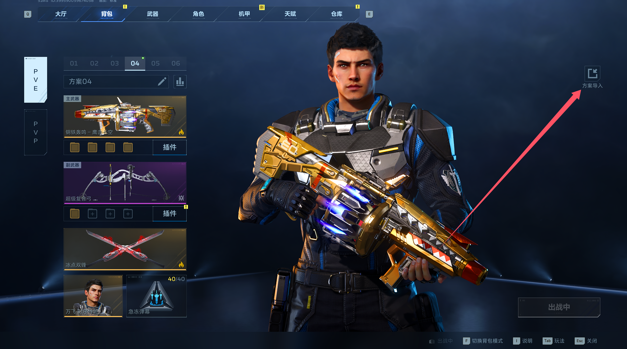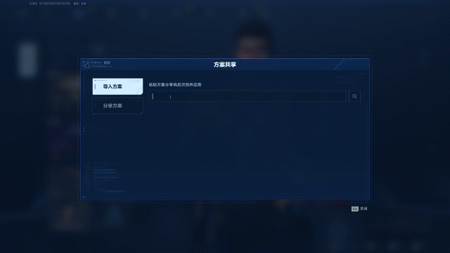 【背包界面右侧】→【方案导入】→【分享方案】or【导入方案】