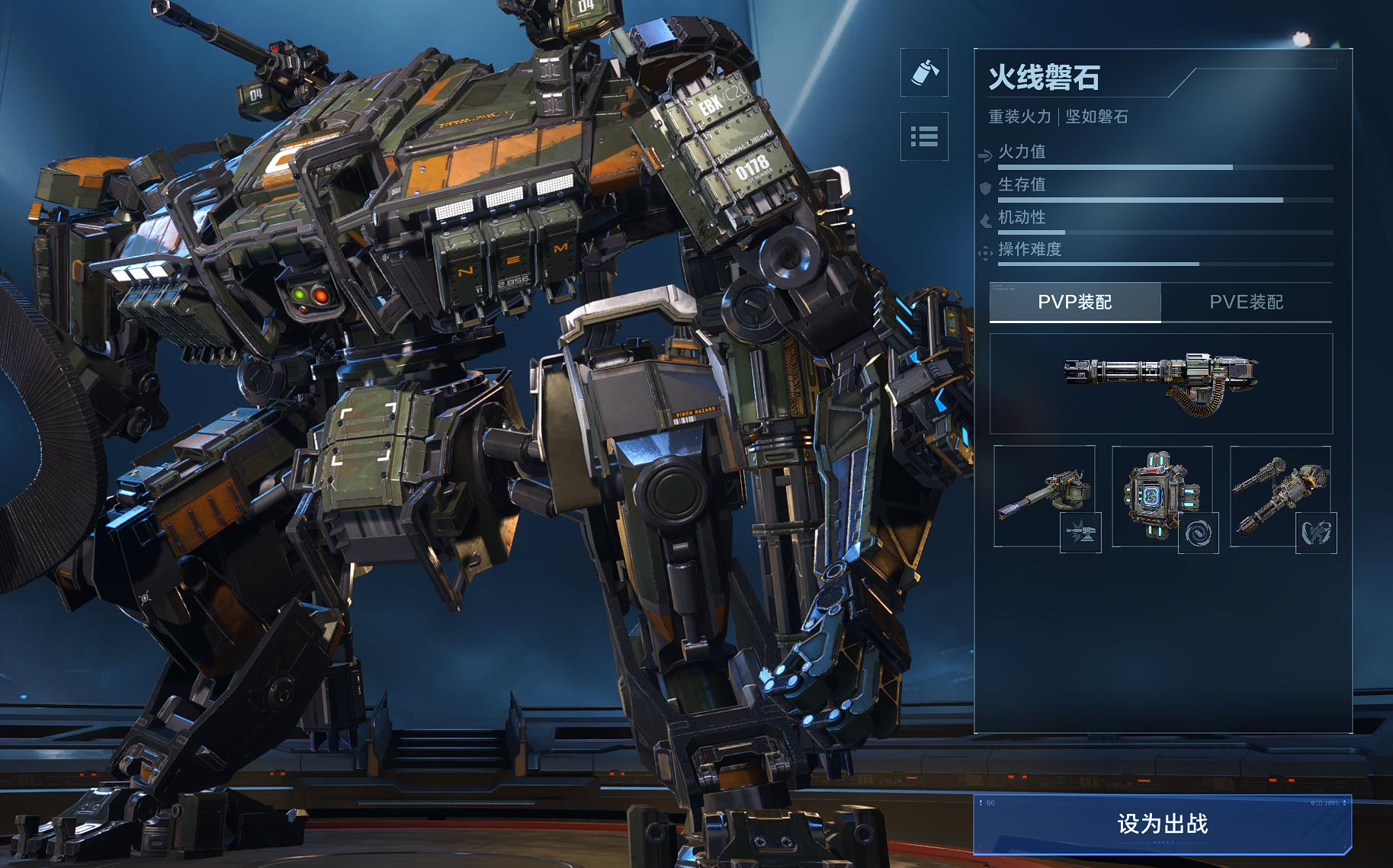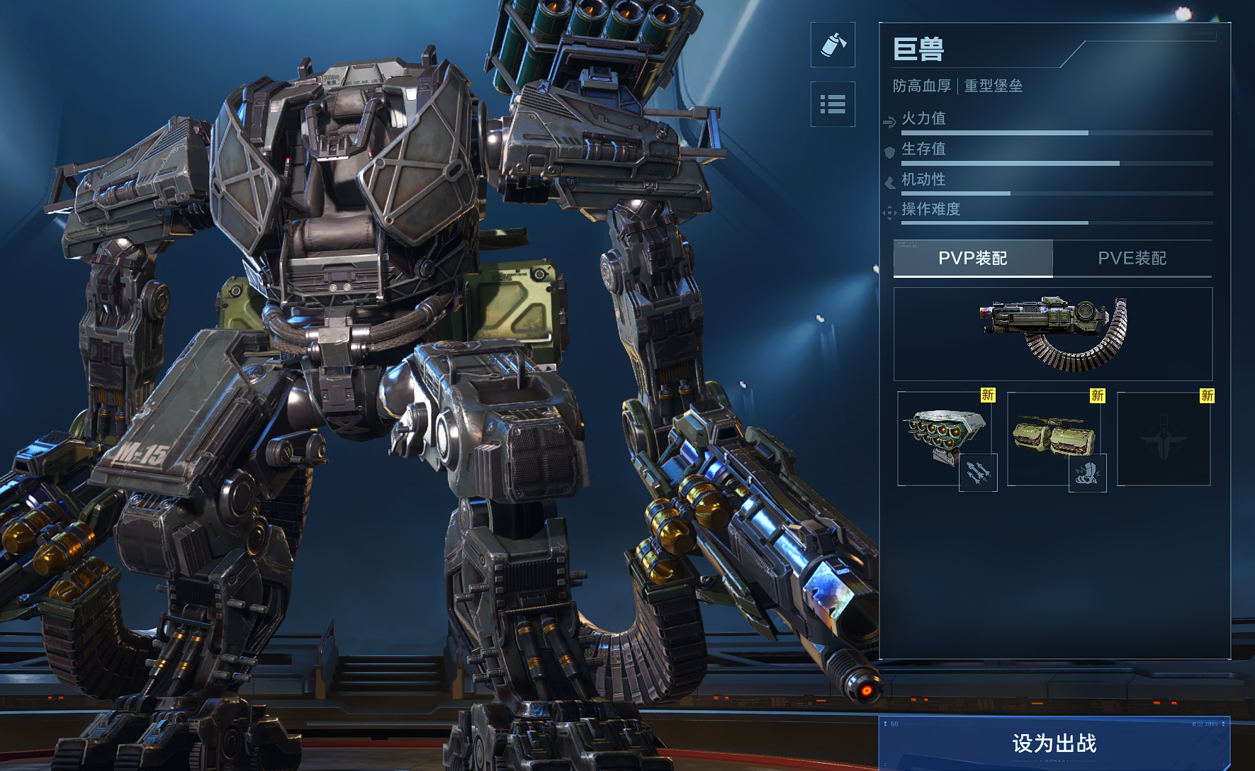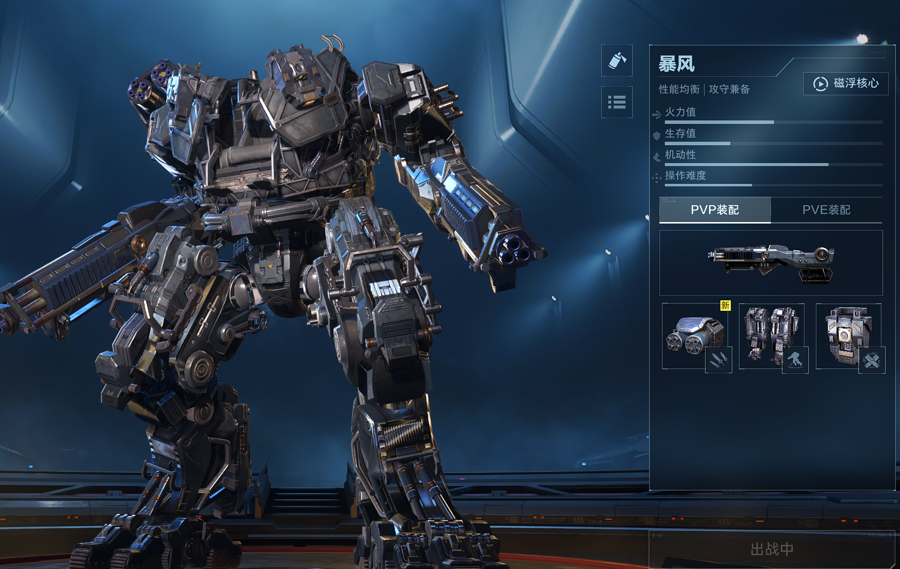 机甲一共有三种类型,分别是暴风、巨兽以及火线磐石,这三台机甲各有各的特点。