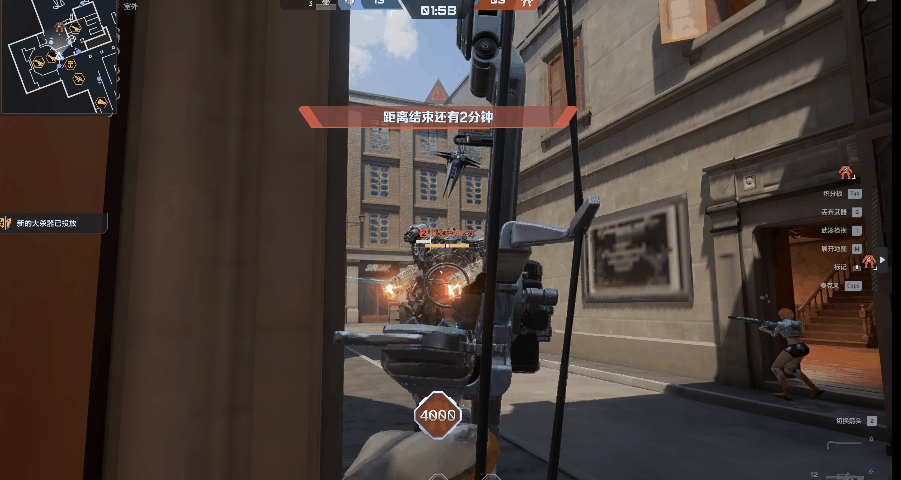 除暴风机甲外,其他两名机甲位移较少,十分笨重,可以利用复活点、教堂附近的柱子和集装箱等掩体位置,边跑变输出,让敌方不能及时输出,例如咖啡店后的集装箱就可以与敌人进行“秦王绕柱”,边跑边打,消耗对手。
