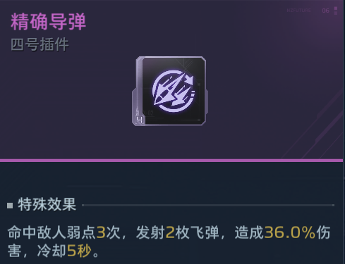 这一套插件多为固定属性加成,无需叠加或额外操作,更利于新手期稳定获得加成。四号插件【精准导弹】则是契合雷霆999命中弱点增伤的机制,再次提升命中弱点时的收益。