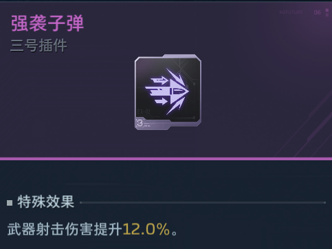选择思路:三号位可以选择命中敌人、命中弱点、击败敌人、持续开火提升伤害或其他属性的插件,不能选择与换弹、释放技能、处于后台、命中减速有关的插件。
