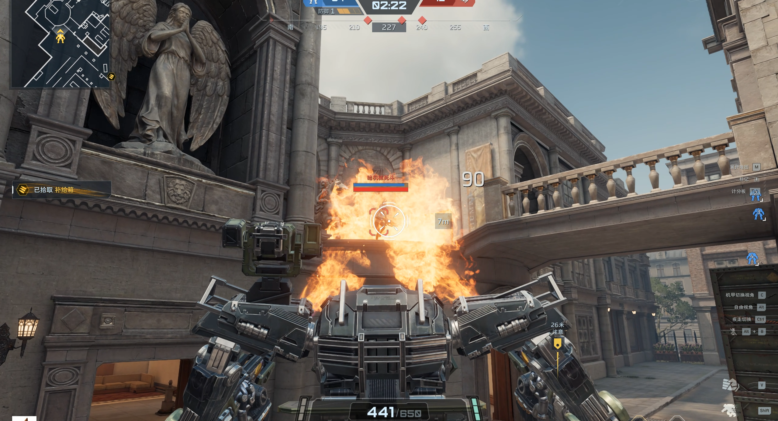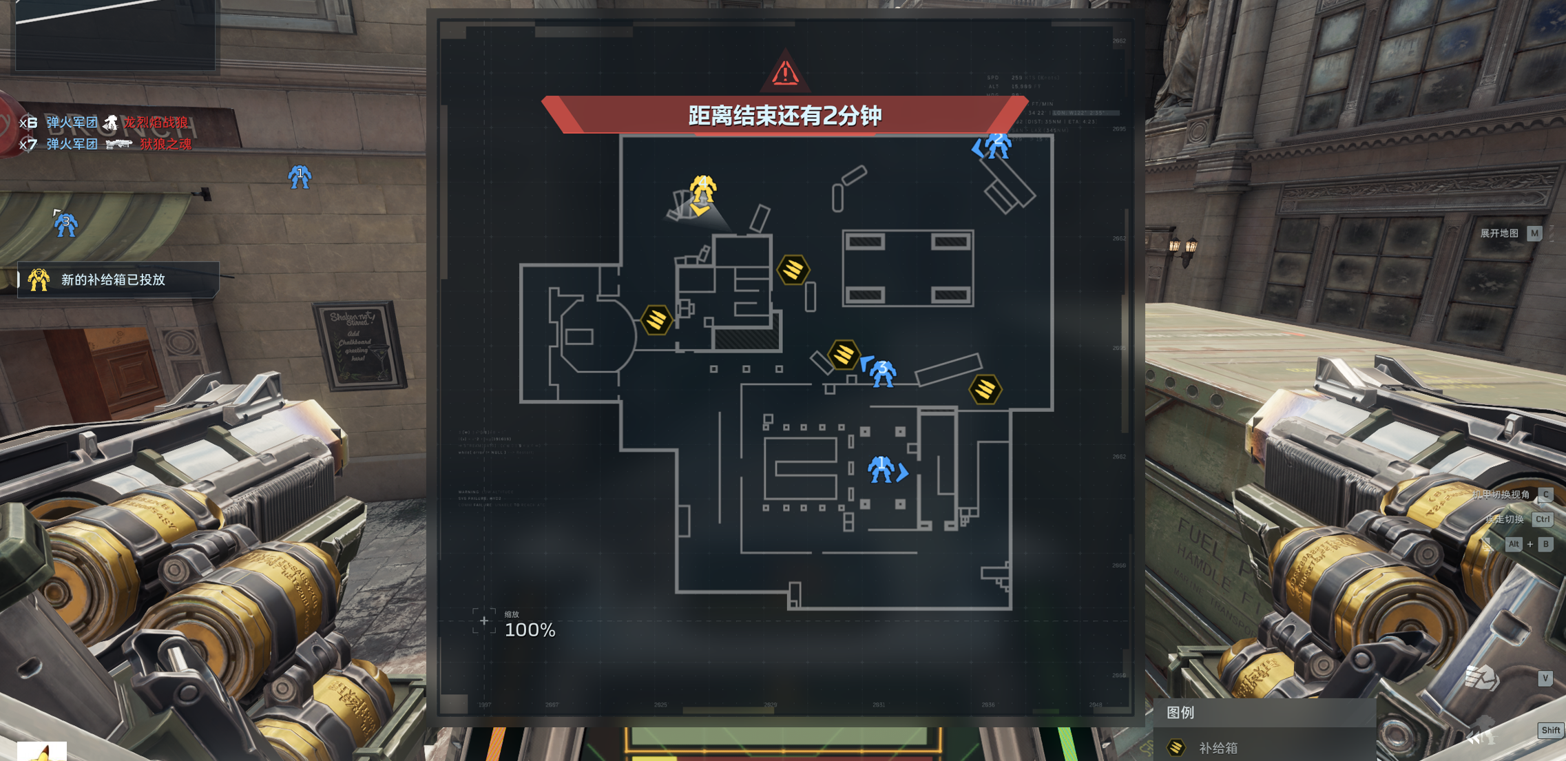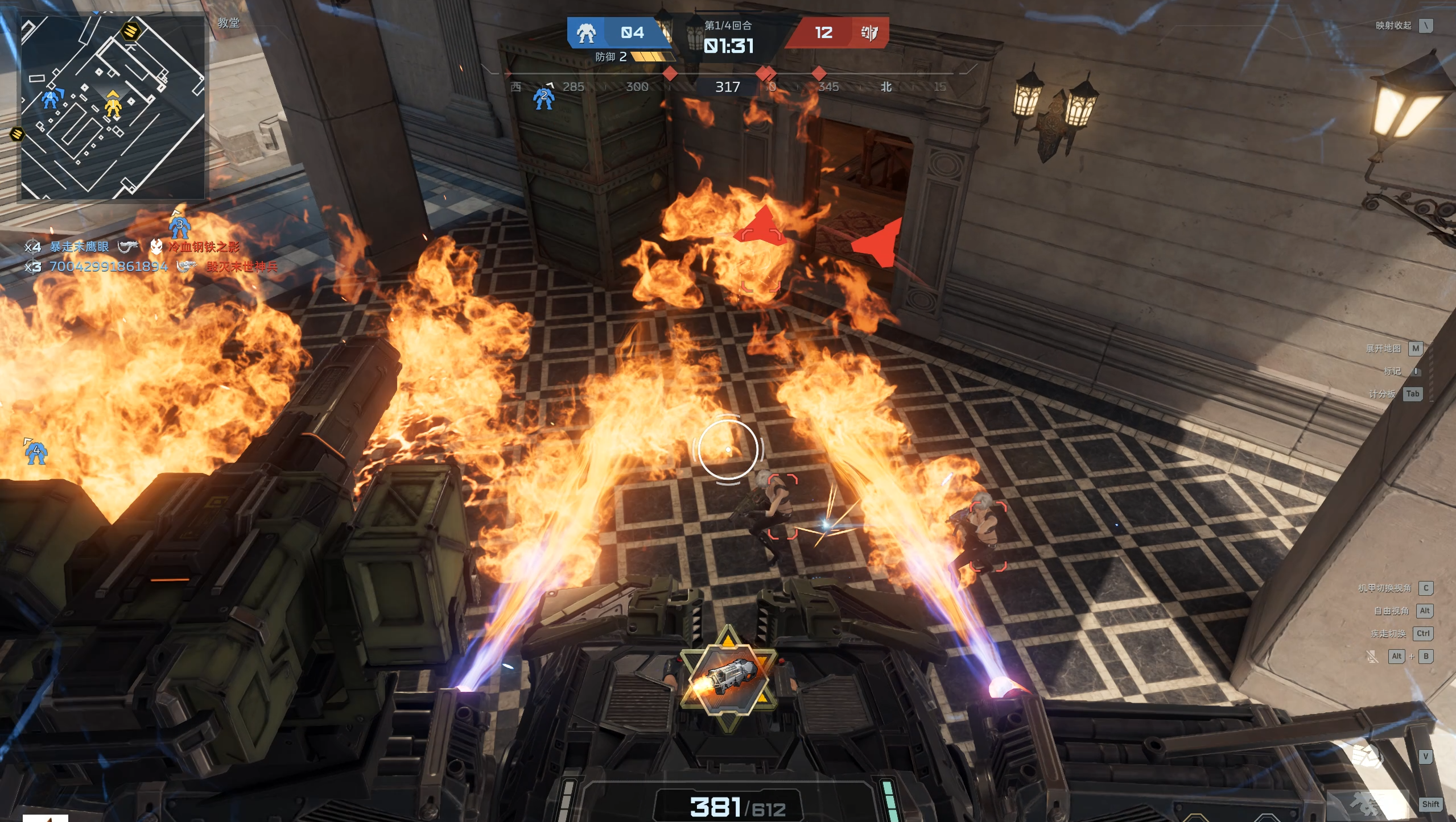 第二个点位是广场前,在这里可以利用机枪扫射收割教堂复活的敌人,当自身状态不佳时,还能利用广场的柱子来抵挡伤害,通过4级解锁的治疗技能进行治疗,如果没有达到4级,可以打开地图,找到最近的补给箱,使用爆燃冲锋快速抵达。
