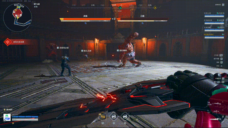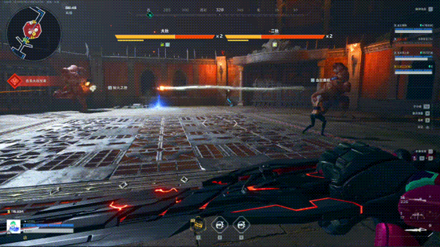 BOSS在经过一段时间后,大壮会把二壮提到二层的位置,这个时候大壮会负责在下面牵制我们的火力,二壮则会趁机举起充满岩浆的石头丢向我们,此时我们既要在下面躲避大壮的攻击,同时也要避免站在二壮的正前方,否则二壮就会锁定正前方的我们丢石头,一旦被砸中就会被秒,我们可以优先集中火力将二壮秒掉,然后再攻击大壮即可。