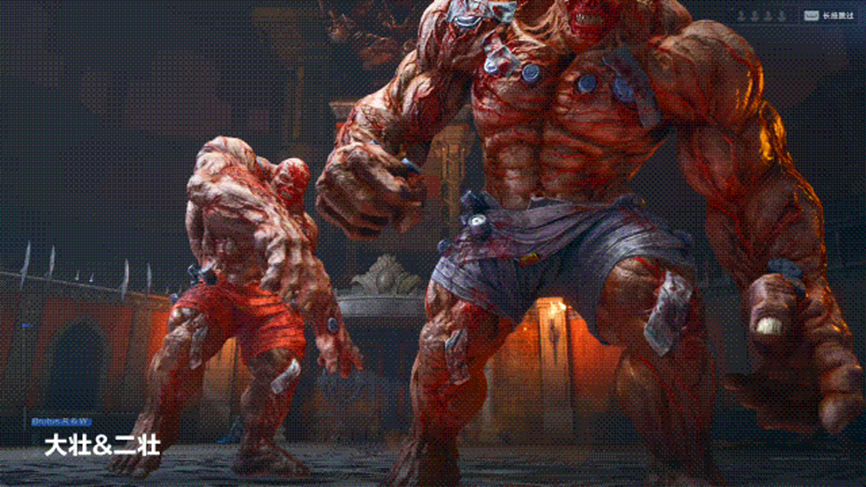 大壮在开局之后会直接吼叫,发出红色的冲击波,紧接着双拳会变红,这个时候大壮的伤害会显著提高,我们需要拉开和大壮之间的距离,不要被大壮的近身三连击命中,否则很容易被秒,二壮的举石头也是同理,只不过面对二壮时,尽量不要站在其前方,否则二壮就会瞄准正前方的我们投掷石头。