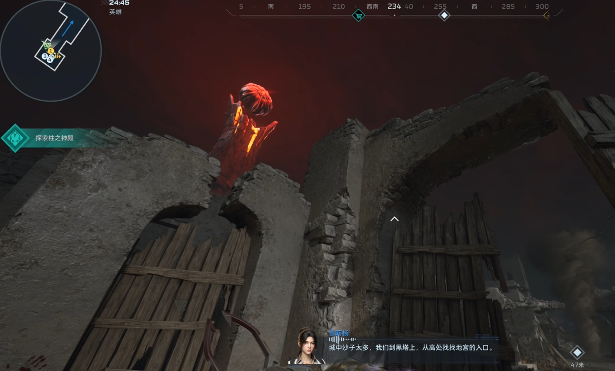 C区:精绝主祭司前区域跑图说明小型沙暴在精绝主祭司区域,逆行者们需跟随任务指引前往黑塔,该区域BOSS——精绝主祭司就在黑塔内。
