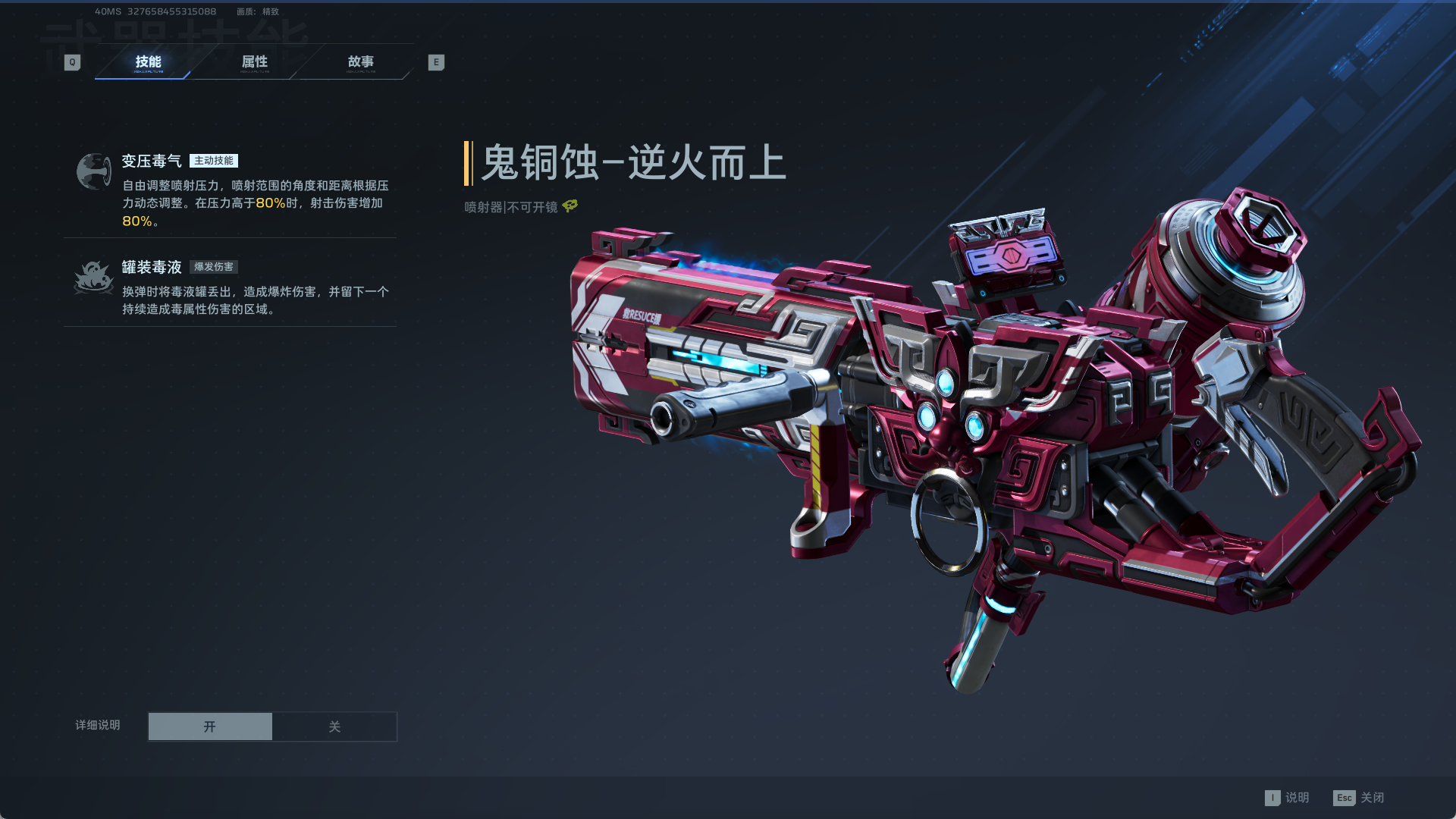 鬼铜蚀-逆火而上:可调整喷射压力改变攻击范围,换弹时投掷毒液罐造成爆炸伤害,并生成持续毒属性伤害区域。