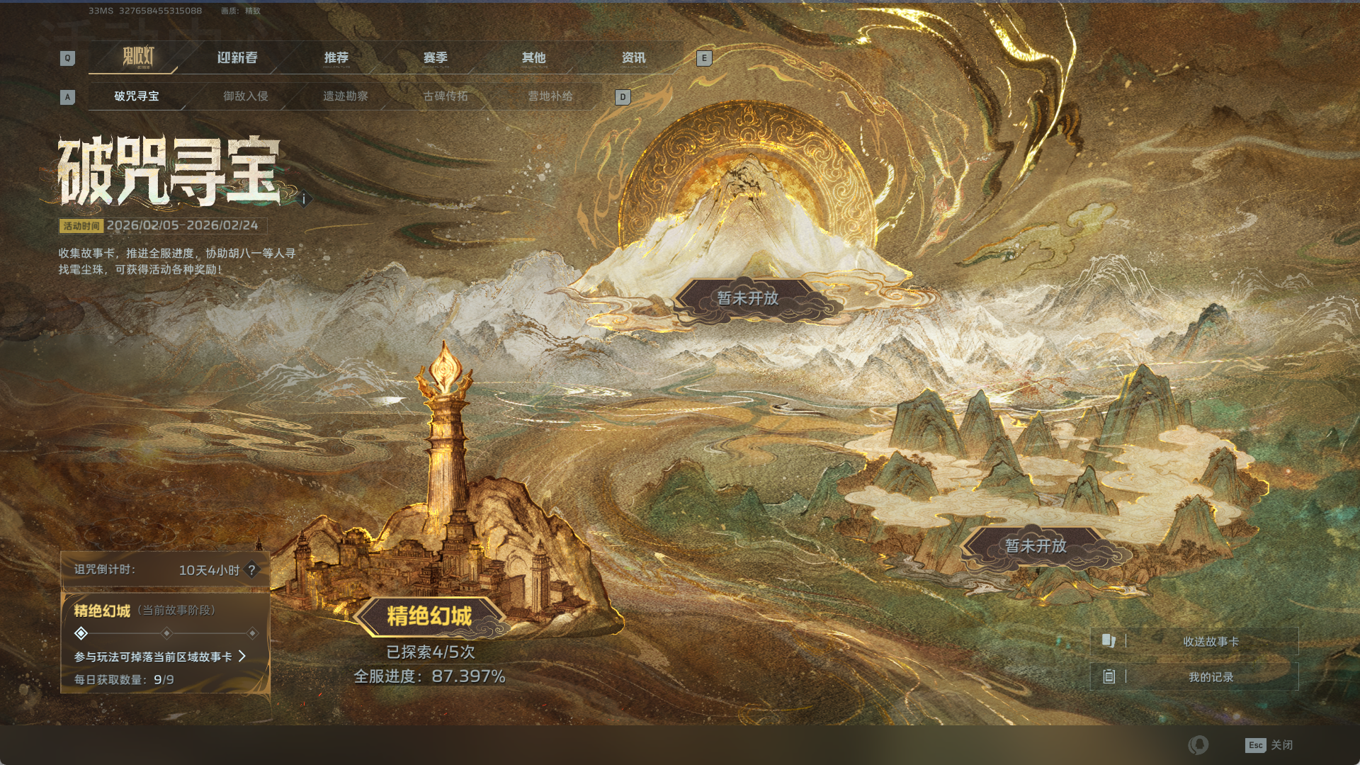 破咒寻宝在该板块中,逆行者们需收集故事卡推进全服进度,解锁福利。