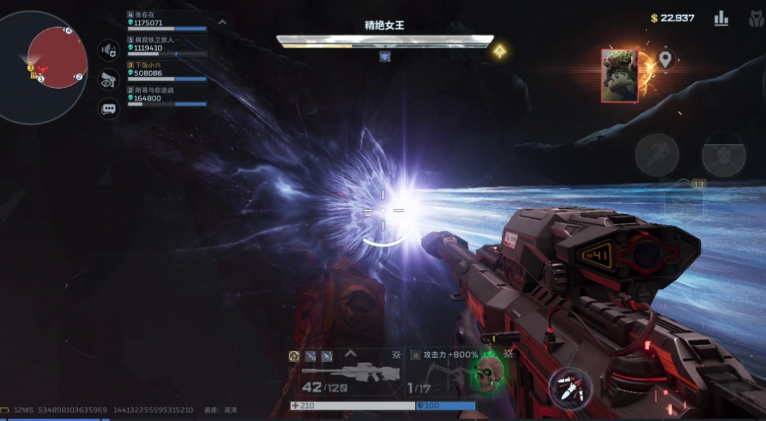 女王开启护盾全程无敌,必须打碎场地鬼眼才能输出。放弃打BOSS,全力集火鬼眼;死神射程远,可安全点射,打断技能。