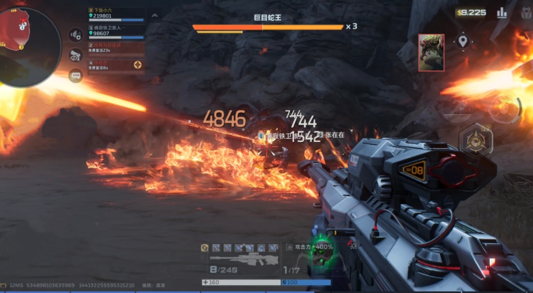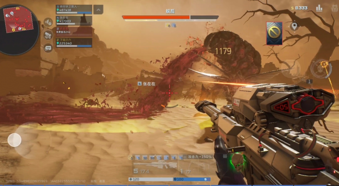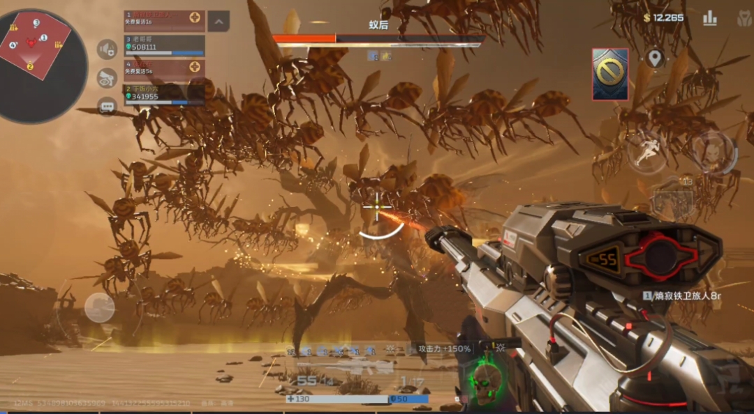 蚁后腹部展开产卵,虫卵孵化蚁群,蚁群靠近BOSS会回血,场面混乱易崩盘。这里建议大家在虫卵落地时优先点射虫卵→清蚁群→再打蚁后腹部弱点;回血时在前期还是可以攻击蚁后头部的,后期攻击蚁后中下部,让其无法或者尽可能少的回复血量。