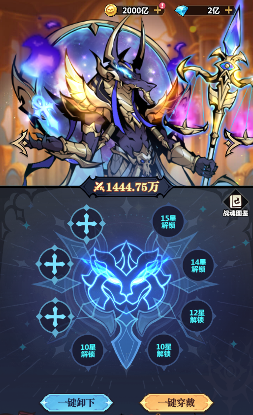 3.英雄6星后可开启战魂系统,为每个英雄提供不同技能选择。
