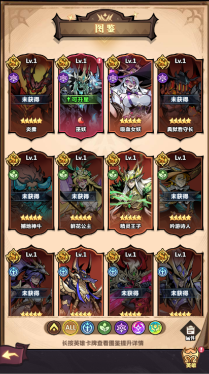 7.英雄图鉴在获得英雄或升星时,可对应升级对应英雄图鉴获得奖励。