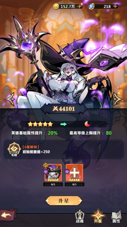 1.英雄可通过升级和升星的操作提升战力,升级达到特定等级时需要进行升阶操作后才能继续提升等级,升星则需要消耗相应的英雄本体、其他英雄材料以及突破石进行升星。