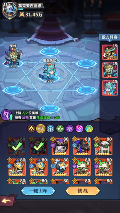 3.不同关卡会有不同的上阵英雄数量限制,满足条件时才能进行挑战。