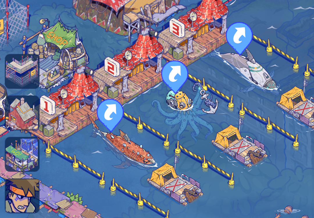 ② 点击基地海面上黄色光圈即可随机获得藏品碎片;