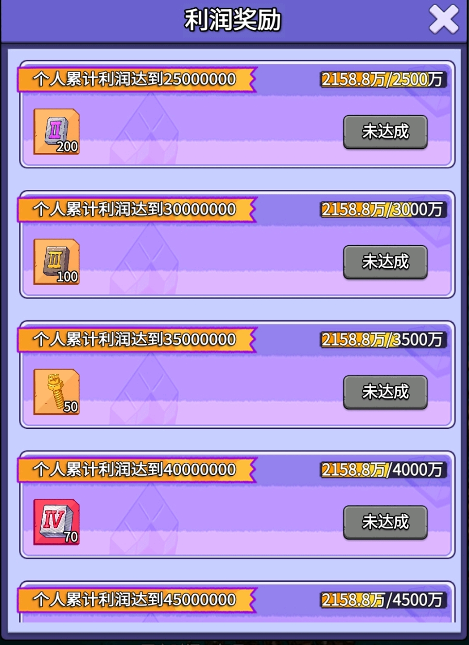 本次活动最终利润:2158W 个人排行第 15 名,仍有6个档次奖励没拿满。