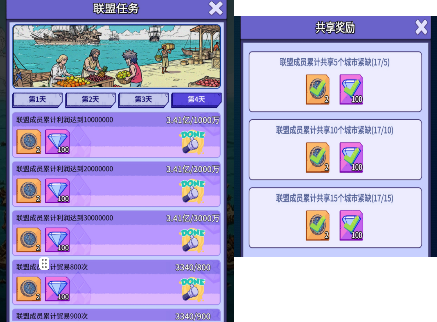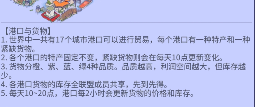 1、每天早上 10 点贸易开启前,联盟成员提前商量好要去往的贸易城,把船提前停靠。