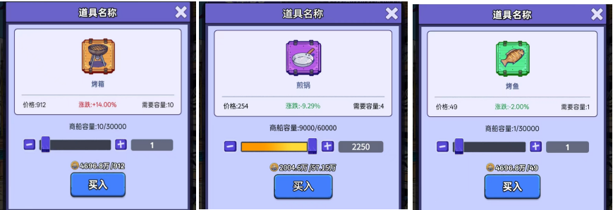 橙色货物品质最高、利润空间最大、占船舱容量最多、售价最贵,但库存最少。
