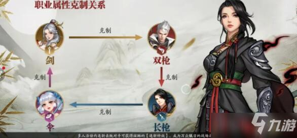 职业之间存在克制关系,长枪克制伞,伞克制刀剑,刀剑克制火枪,火枪则克制长枪。这种相互克制、相辅相成的设定,把东方文化中的思想体现得淋漓尽致,也让游戏更加平衡,各个职业在战斗中都能发挥自己的闪光点。