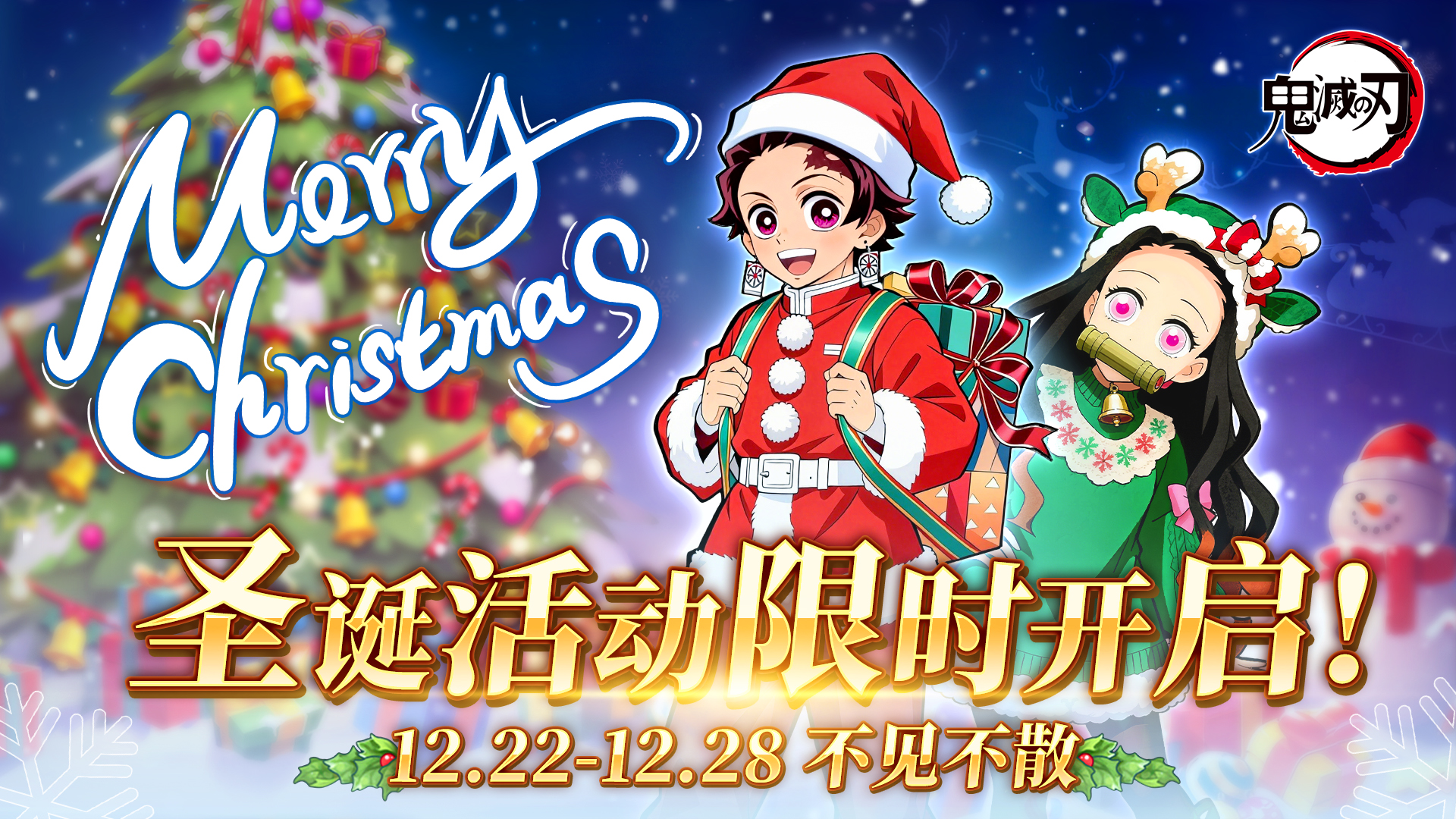 鬼杀队本部迎来了一个难得的宁静雪夜。为抚慰剑士们常年征战的疲惫,圣诞限时活动将于12月22日00:00至12月28日23:59限时开启