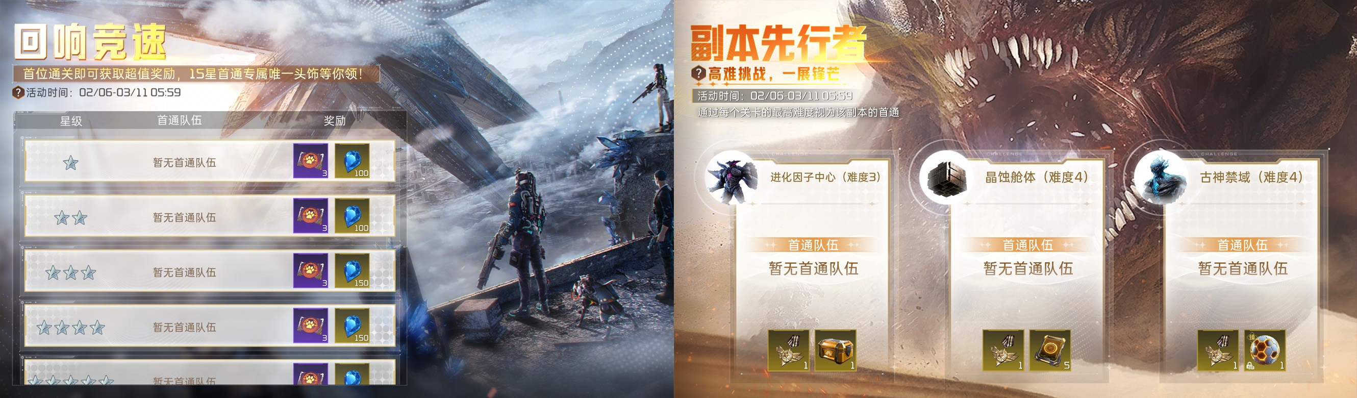 专属活动二【星芒初露】:在“回响竞速”活动中,首支通关战争回响 15 星的队伍,能拿带属性的专属动态称号!而在“副本先行者”活动中,本服第一个打通挑战级副本对应难度的队伍,也有专属称号和金色熔炼数据等好礼!扫地阿姨温馨提醒,提前做好攻略,更容易拔得头筹哦~
