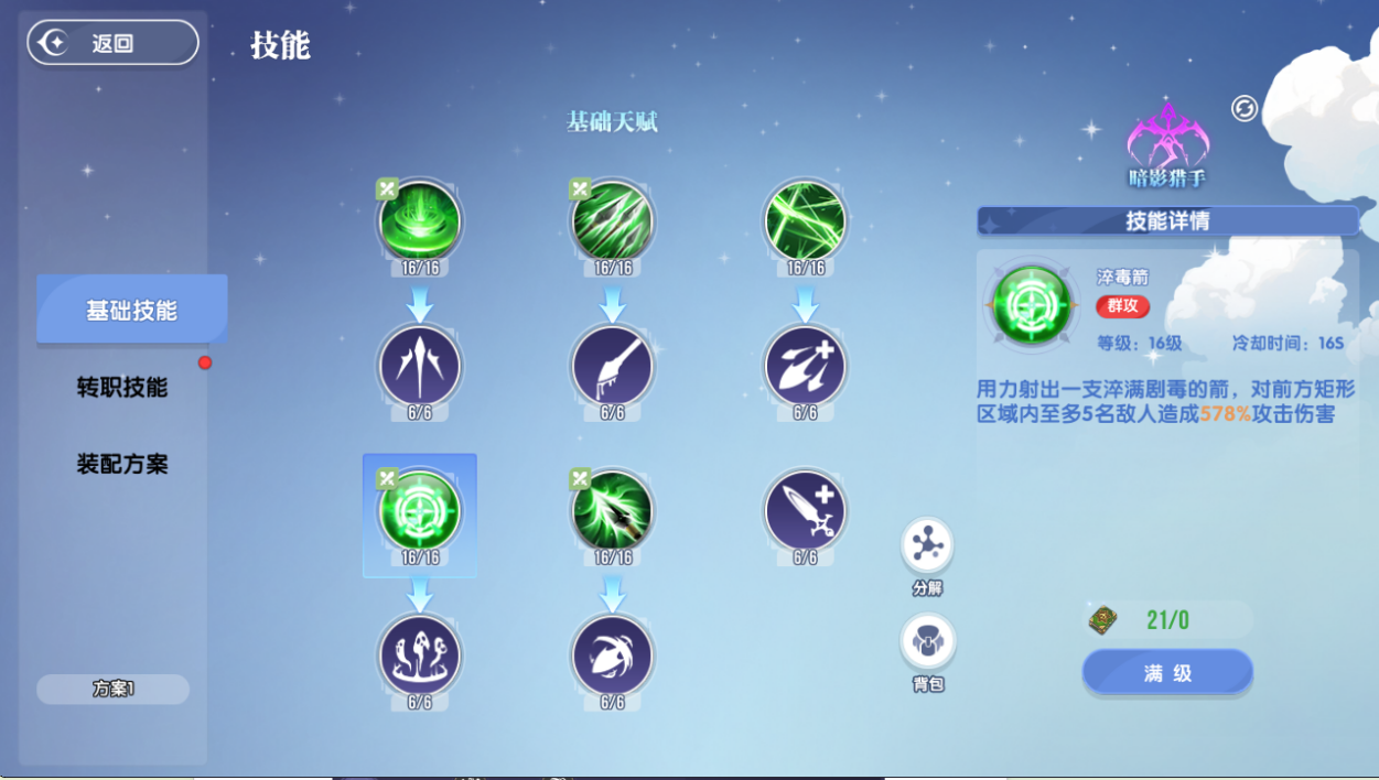 之所以不选择淬毒箭,是因为后续的毒素效果需要站在上面才会释放到,但是在PK中基本不会有人站立不动原地输出,所以这一效果的伤害将会大打折扣,在进行取舍后只能将它放弃。无论选择哪一种方案,只需要在装配里按照小编所说进行加点和依次装备,保证好释放的顺序,这样即使自动操作也能有一样的效果。