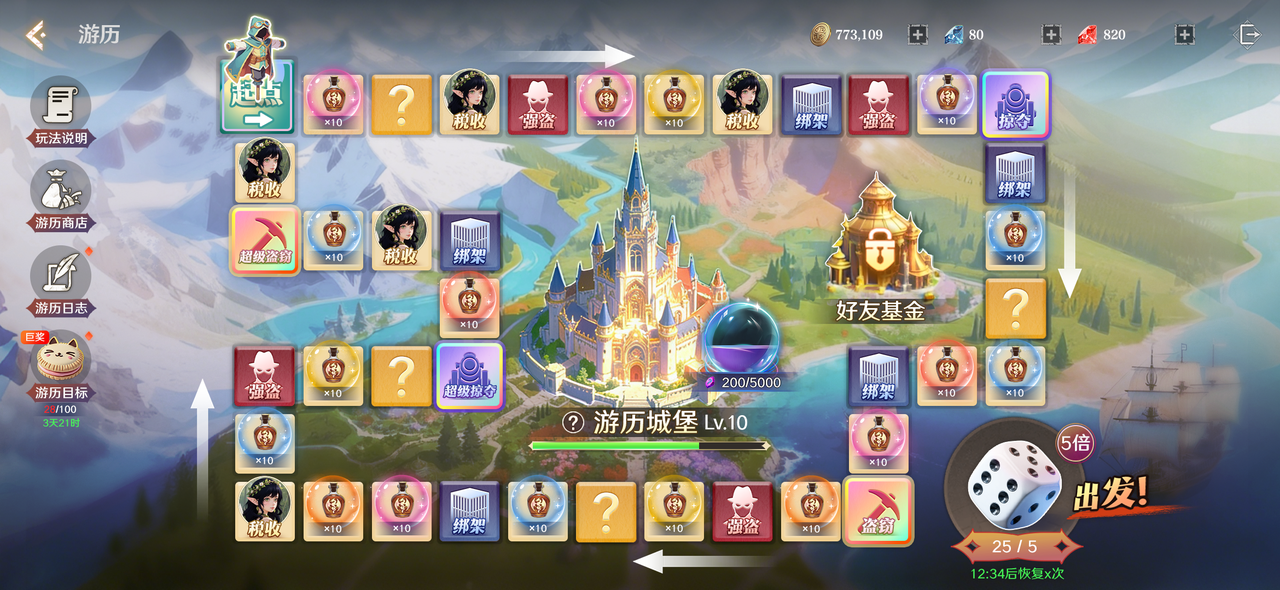 玩法规则超简单:冒险者通过完成日常任务获取骰子,投掷骰子前进相应步数,触发不同的随机事件,欧气随时可能爆发!