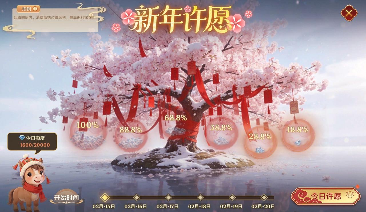 每日许愿领蓝钻返利,稳赚不亏!每天可进行1次许愿,许愿后将随机获得专属返利折扣,折扣次日自动重置,每天都有新惊喜!