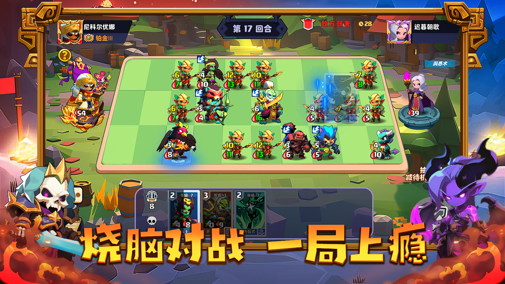 排兵布阵,享受紧张刺激的绝佳对弈步步为营、精彩绝伦,告别单打独斗,集结志同道合的英雄,搭配巧妙联动的策略,指挥兽人挥舞大刀英勇进攻、帝国法师位于后方持续输出、矮人各种兵器层出不穷,或许你和你的小队便是最强的职业组合,在这个冒险的旅途中,你们会奏响如何的胜利乐章?即刻等你揭晓!