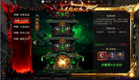 🏯 二、神魔·轮回塔——爬塔冲层,神装拿到手软!