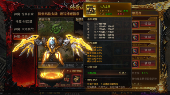 通过轮回塔、大陆挑战、传奇之旅攒神魔玉,直接兑换限定外显!颜值党必冲!