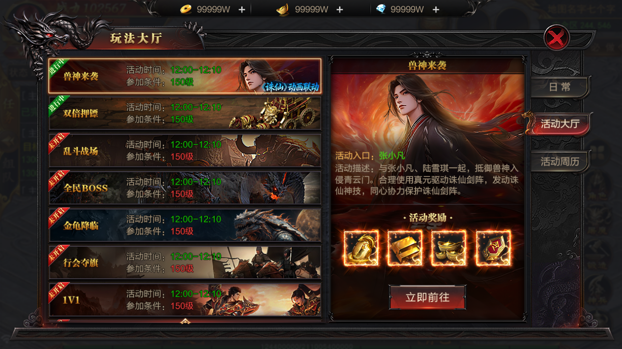 成功守卫诛仙剑阵,不仅能捍卫青云正道,更可依据守卫表现冲击全服排行榜!根据排名领取珍稀奖励,证明你的守护实力!