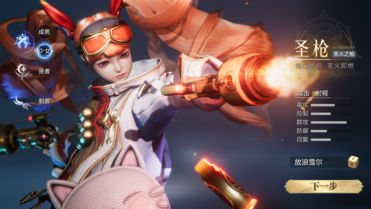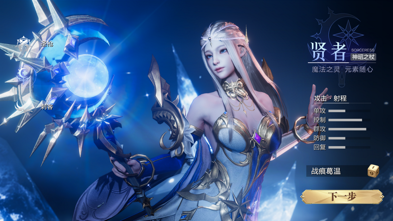目前试玩版只开放了三个职业,圣枪、贤者、刺客,其中圣枪有成男和少女的两个性别选项。