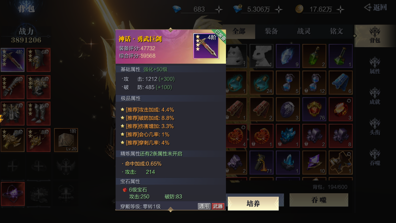 首先是装备,战士前期是最吃装备的职业之一,基本上要跟着等级及时更新装备,和装备强化等级,首冲礼包的神话武器一定要氪!这把武器将会陪着玩家一直到3转,所用来培养的材料在后期也可无损卸下,大胆地把资源砸给它就完事了!