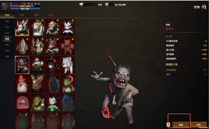 2:如何开始远征:宠物远征的必要条件是要先超越宠物。稀有宠物里带五角星的可以进行超越