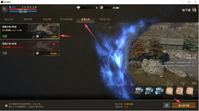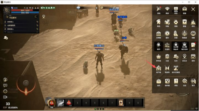 3、在游戏右上角点击菜单按钮选择【地下城】