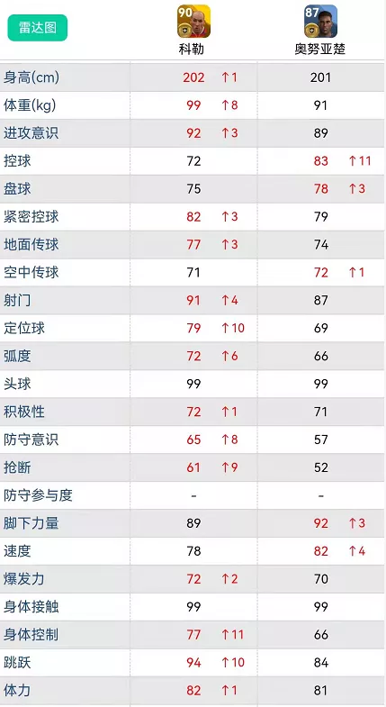 8.0数据,奥努亚楚银球升为金球,2米以上的中锋在实况里也算是另类战术打法了,用好了也很强悍!下面来数据分析下和高中锋的战术打法:
