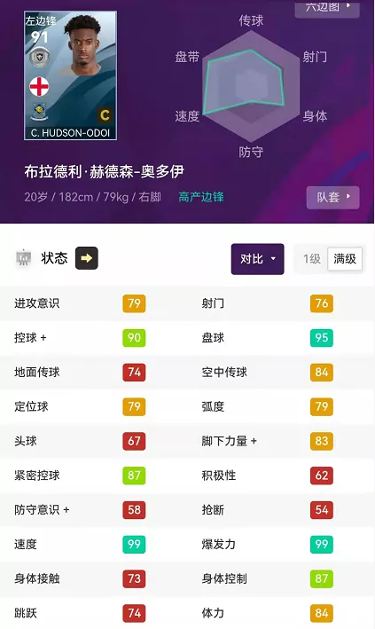 奥多一有着完美99的双速,盘带能力非常强,身体控制也很灵活,用他边路突破还是很不错的,还有一脚精准的下底传中。