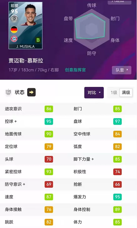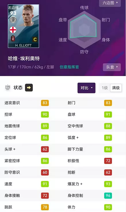 技术:8分 极高的控球盘带属性,传球和射门还在发展上升期!