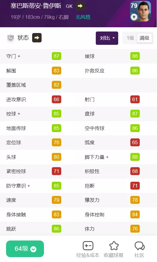 这非默认情况下,后腰就能达到78,如果注册位置在后腰,他居然能有80+的总评,这也是离了大谱。