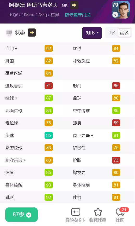 速度85,身体93,跳跃92,头球95,模型198,我就问你进攻的时候,头球行不行?