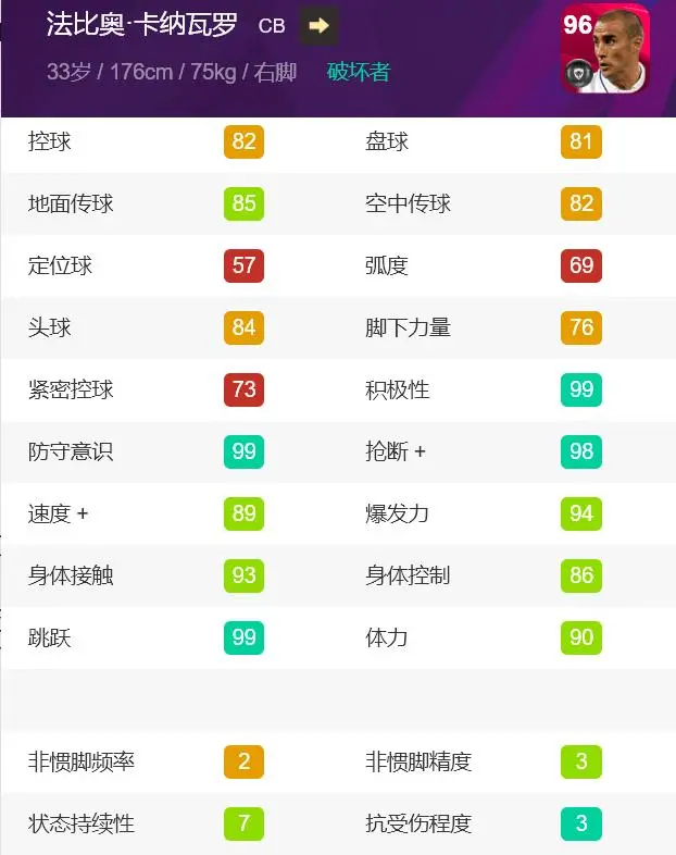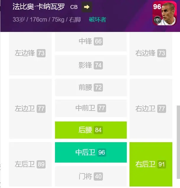 卡纳瓦罗有三个位置区域:后腰、中后卫、右后卫。