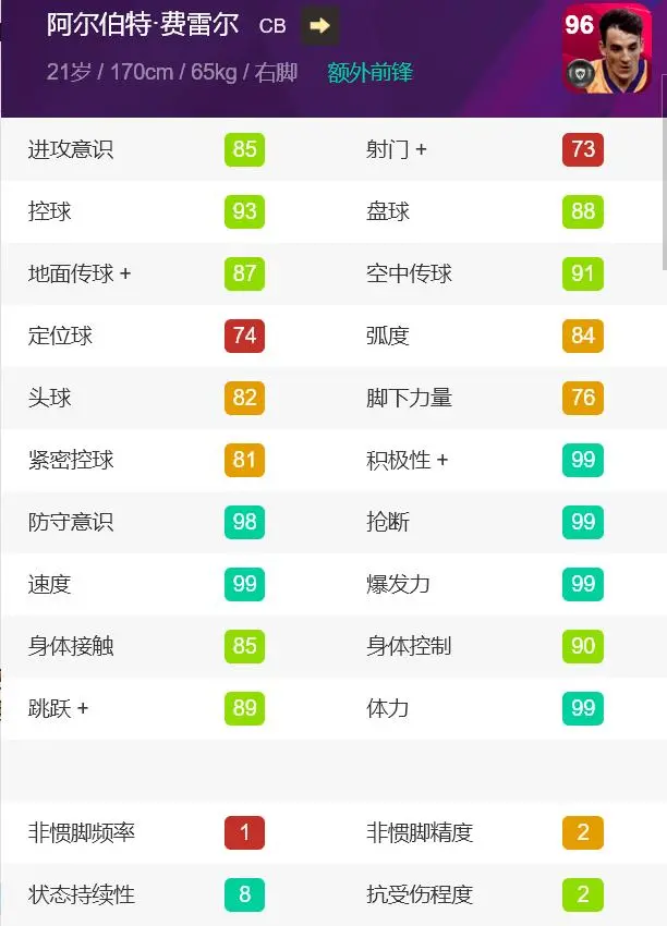 后腰?这个数据打后腰肯定没有即将出的时刻马克莱莱好。右后卫?是啊,像是贝肯鲍尔,打中卫有点吃力,我们通常会把他放在左后卫,但是新出的时刻费雷尔在右后卫的位置上简直逆天。