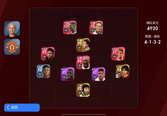 锋线变成了弗兰和拉什福德,我看了一下,前十里面只有一个人没用拉师傅(鲁美+时刻C罗),不知道是不是在替补席。维埃拉基本都是必备的,后卫一般就精选瓦拉内等,有的还用红坎贝尔,左右后卫基本都有一个马尔蒂尼。不管哪个版本的小贝,大家貌似都有一个。门将要么是切赫,要么是一些精选门将,像诺伊尔、库尔图瓦等。果然,足球游戏玩到最后,大家的阵容基本都差不多……大家都来晒晒自己的阵容啊!