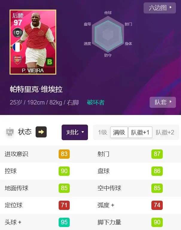 是破坏者维埃拉,不是全能中场维埃拉,全能中场那个进攻性的确不错,但是防守跟黄卡和破坏者的红卡不能比。实况足球这游戏最难的不是进攻,是防守,在这方面,维埃拉对球队的帮助是巨大的,他就是实况第一后腰。但是关于黄传和时刻谁更好,议论很多,如果你有1600积分,我很推荐你换黄的,时刻卡最大的问题就是续约压力太大了吧。
