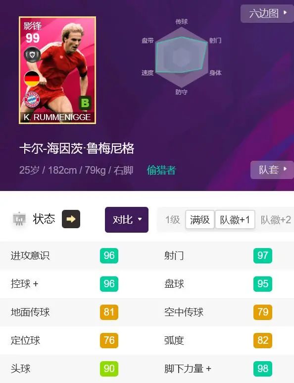 记得在天梯碰到一玩家的昵称是:用你的技术打败我,而不是鲁梅尼格。这个人实在太bug了,你只要让他在禁区线外一格以内拿到射门机会,90%都能进球,有时候别人一脚长传,你后卫就跟傻子一样被甩开。刚才说维埃拉对防守帮助甚大,那鲁美绝对能让你的进攻提升一个档次。而且据说,这个红鲁美比黄的更强,而且黄的被暗削了,不知道真的假的。当然,有黄的肯定更好啊,永久使用,永无后患。