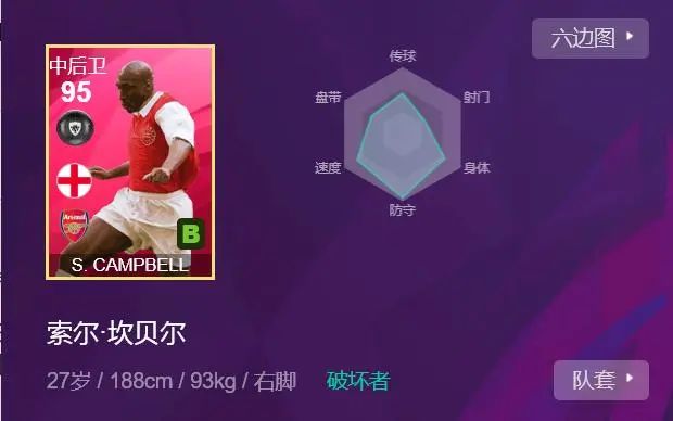 红的坎贝尔和黄的坎贝尔就不是一个坎贝尔。虽然很多人说漏,但中卫这个位置实在是太缺人了(而且明明我遇到的都很强啊),精选又那么难抽。此外,大家实在缺中锋,还有尤文C罗、古利特、曼联弗兰可以换,都是T0水平;缺边锋就换时刻小罗、金边洛、脱鞋梅西;这么多应该够了吧……